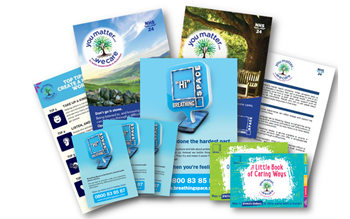 A number of electronic resources are available to download from this page or you can order free printed copies by emailing breathingspaceresources@nhs24.scot.nhs.uk. Service resources Breathing Space Leaflet [A5, 577KB PDF] Breathing Space Poster [A4, 205KB PDF] You Matter, We Care Campaign resources You Matter, We Care’ is a campaign led by Breathing Space, to highlight the benefits kindness and positive relationships can have on our mental wellbeing. We’d love you to spread the ...