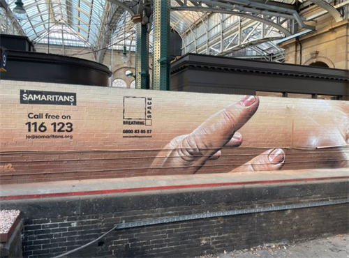 Measuring over 10 metres in length and designed by contemporary street artist Sam Bates, aka ‘Smug’, the mural was commissioned by Network Rail in partnership with Samaritans and Breathing Space to signpost to support for those struggling with the pressures of Christmas and the pandemic.